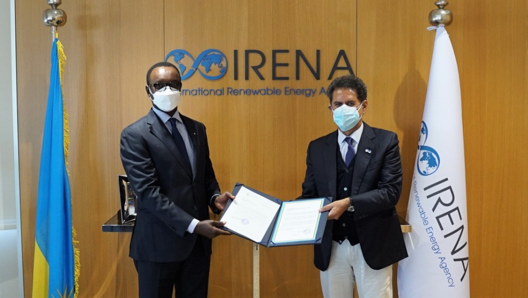 “Enhanced partnership with IRENA will promote exchange of knowledge and best practices in renewable energy. We will also work together in resource mobilization efforts to implement our NDC especially for renewable energy targets,” Ambassador Emmanuel Hategeka underscored.